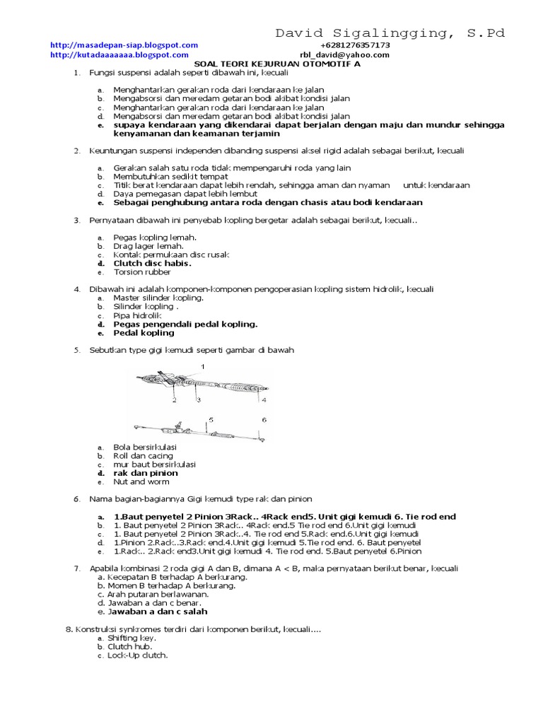 Soal Teori Kejuruan Otomotif Dan Kunci Jawaban 2020 - Kisi Kisi Soal Un Akomodasi Perhotelan Jawabanku Id - Kunci jawaban diambil dari beberapa sumber di internet.
