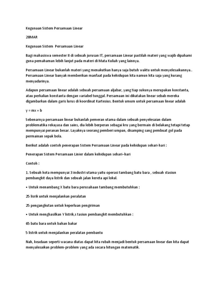 contoh soal persamaan linier dalam kehidupan sehari hari. dalam suatu hari seorang pedagang berhasil menjual sandal dan sepatu sebanyak 12 pasang. Uang yang diperoleh hasil dari penjualan adalah rp. 2x 3 y 6000 5x 4 y 11500. Pasalnya, matematika, khususnya penerapan fungsi eksponensial sangat erat hubungannya dengan keseharian kita.