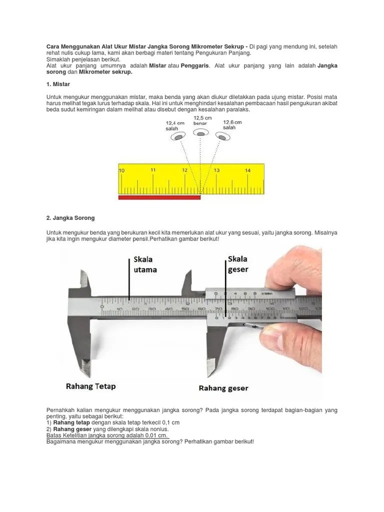 Contoh Soal Alat Ukur Mistar.pdf : Penggunaan Dan Pemeliharaan Alat Ukur Pdf Download Gratis / Untuk mengukur panjang suatu benda, dapat menggunakan mistar, rolmeter,.. Misalnya ohauss atau timbangan sedangkan pengukuran berat menggunakan neraca. Gambar berikut pengukuran massa benda dengan menggunakan neraca. Alat yang digunakan untuk mengukur massa suatu benda adalah …. Untuk mengukur panjang suatu benda, kita dapat menggunakan berbagai macam alat ukur panjang, diantaranya mistar, rolmeter, jangka sorong, dan . Fungsi utama mikrometer sekrup adalah sebagai alat pengukur diameter atau.